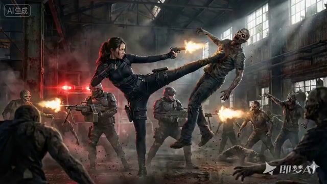 图片 1 中的男子是主角,他身手敏捷,在战场上枪林弹雨中奔跑,进行着激烈的战术射击。视觉风格:1. 电影级画质:强烈的橙色和青色对比,高对比度,胶片颗粒纹理。2. 动态细节:明显的枪口火焰,子弹击中周围物体溅起碎片和火花,背景中爆炸产生的烟雾和冲击波。3. 镜头运动:手持摄像机风格的跟拍,镜头随着角色的移动剧烈晃动,偶尔快速变焦(Zoom),营造出极度紧张和混乱的临场感。角色表演:主角眼神坚定,动作充满力量和速度,完美再现了好莱坞动作明星的风采。