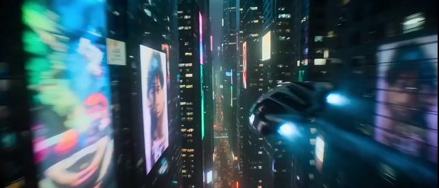 [影片风格]:好莱坞科幻大片、赛博朋克美学、高对比度霓虹灯光、IMAX 电影质感、史诗级配乐感。 [影片时长]:10 秒 [分镜脚本]: [00:00-00:04] 镜头 1:广角跟踪镜头,景深极大。场景:夜晚的未来主义巨型城市峡谷,下着雨。动作:一辆流线型反重力载具在摩天大楼间疾驰。环境细节(核心测试点):无数巨大的全息广告牌闪烁,霓虹灯复杂地反射在湿润的玻璃幕墙和载具表面。载具尾部留下长长的蓝色光轨。 [00:04-00:07] 镜头 2:特写动作镜头 / 驾驶舱视角。动作:载具进行急转弯和侧滑机动以避开障碍物。细节:镜头非常接近载具,显示机身擦过建筑物边缘时产生的火花和雾气。雨点密集地打在镜头上,并被高速气流吹散。画面充满速度带来的震动感(镜头晃动)。 [00:07-00:10] 镜头 3:史诗级拉远 / 摇臂镜头。动作:载具冲出狭窄的建筑群,飞向开阔的中心城市广场。场景:视野突然开阔,展现出巨型城市令人惊叹的全景。载具突破一层巨大的低空云层,云层因气流而翻滚涌动(体积云与湍流)。巨大的镜头光晕横跨屏幕。 [技术参数]:8k 超高清、电影级调色(青色与橙色)、极高动态范围(HDR)、复杂粒子效果渲染。