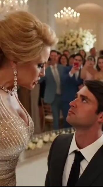 【风格】霸总狗血剧(中式),竖屏构图,高饱和滤镜,极致面部特写,情绪极度抓马。【时长】15 秒 【人物】受辱新郎(穿着廉价西装,眼神隐忍着怒火)VS 刻薄丈母娘(浑身珠光宝气,满脸不屑)。[00:00-00:05] 场景 1:极致羞辱。豪华婚礼现场。丈母娘当众将一封“分手信”狠狠砸在新郎胸口,周围宾客哄堂大笑。【动作】丈母娘用手指戳新郎额头。【台词口型提示】“没车没房,还想娶我女儿?拿着这一百块钱,给我滚!” [00:05-00:10] 场景 2:风云突变(转折)。新郎突然冷笑一声,撕碎分手信。此时,巨大的螺旋桨声(音效)淹没全场,一阵强风吹乱丈母娘的头发。【动作】新郎整理衣领,气场瞬间霸气侧漏。【台词口型提示】“是你们要退婚的。” [00:10-00:15] 场景 3:揭秘。大门被撞开,两排黑衣保镖冲入,单膝跪地铺开红毯。老管家颤颤巍巍地捧着一件黄袍(或一张至尊黑卡),在新郎面前深深鞠躬。丈母娘吓得瘫倒在地,双眼圆睁,满脸震惊。【台词口型提示】老管家高喊:“恭迎龙王(少爷)归位!家族资产已解冻!”