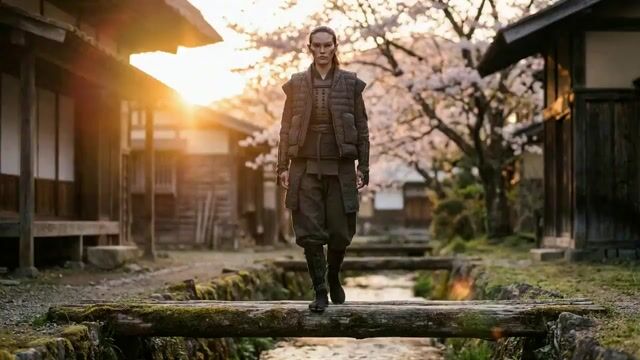 [视觉风格] 东方古典武侠美学,电影化视觉语言,竹林海景观,翠绿色主色调,丰富的光影层次,林间可见柔和的光束效果。 [人物设定] 1. 男性剑客:身着素白长袍,姿态沉稳,动作简洁有力。 2. 女性剑客:身着青凤色轻纱裙,动作轻盈流畅,身姿灵动。 [视频时长] 10 秒 [分镜] [00:00-00:03] 镜头 1:广角构图。 场景:高大茂密的竹林顶部,云雾在林间缓慢流淌。 动作:男女剑客分别立于高竹影中,身形轻盈而稳固,仿佛借气流与竹势保持平衡。 细节:竹枝随风自然弯曲回弹,人物身姿随竹影微妙起伏,呈现出写意化的轻功效果。整体画面静谧而富有张力。 [00:00-00:06] 镜头 2:中景,慢动作。 动作:两人几乎同时跃起,在空中交错而过。 互动:两道剑影在空中短暂交汇,形成一道亮丽的光痕。周围竹叶被气流带动,缓慢旋转散落。 视觉焦点:叶片在空中飞舞,形成清晰的前景与背景层次。动作流畅,无夸张的冲击感。 [00:06-00:10] 镜头 3:动态追踪镜头。 动作:女剑客向前滑行,衣袖拂过竹枝借力变向;男剑客持续追随,借竹为支点,步法轻盈富有节奏感。 环境反馈:镜头平稳追踪运动。竹林在画面边缘形成自然的动态模糊效果。 视觉效果:每一次动作都带起大量散落的竹叶,如叶雨般在画面中流淌,增强空间纵深感和动态美。 [技术要求] 电影级打光,色彩饱和但层次分明,自然的景深,画面稳定干净,呈现东方武侠整体的写意美感与空间张力。